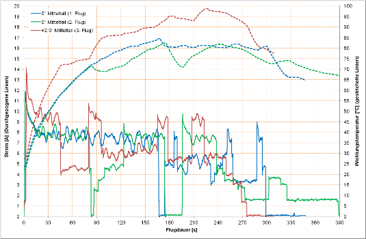 Fühler in die Motorwicklung geklebt und Vergleichsflüge mit dem Uni-Log