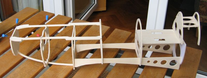 Und wieder das zusammengesteckte Rumpfgerüst, diesmal etwa 5% größer als vorher... |