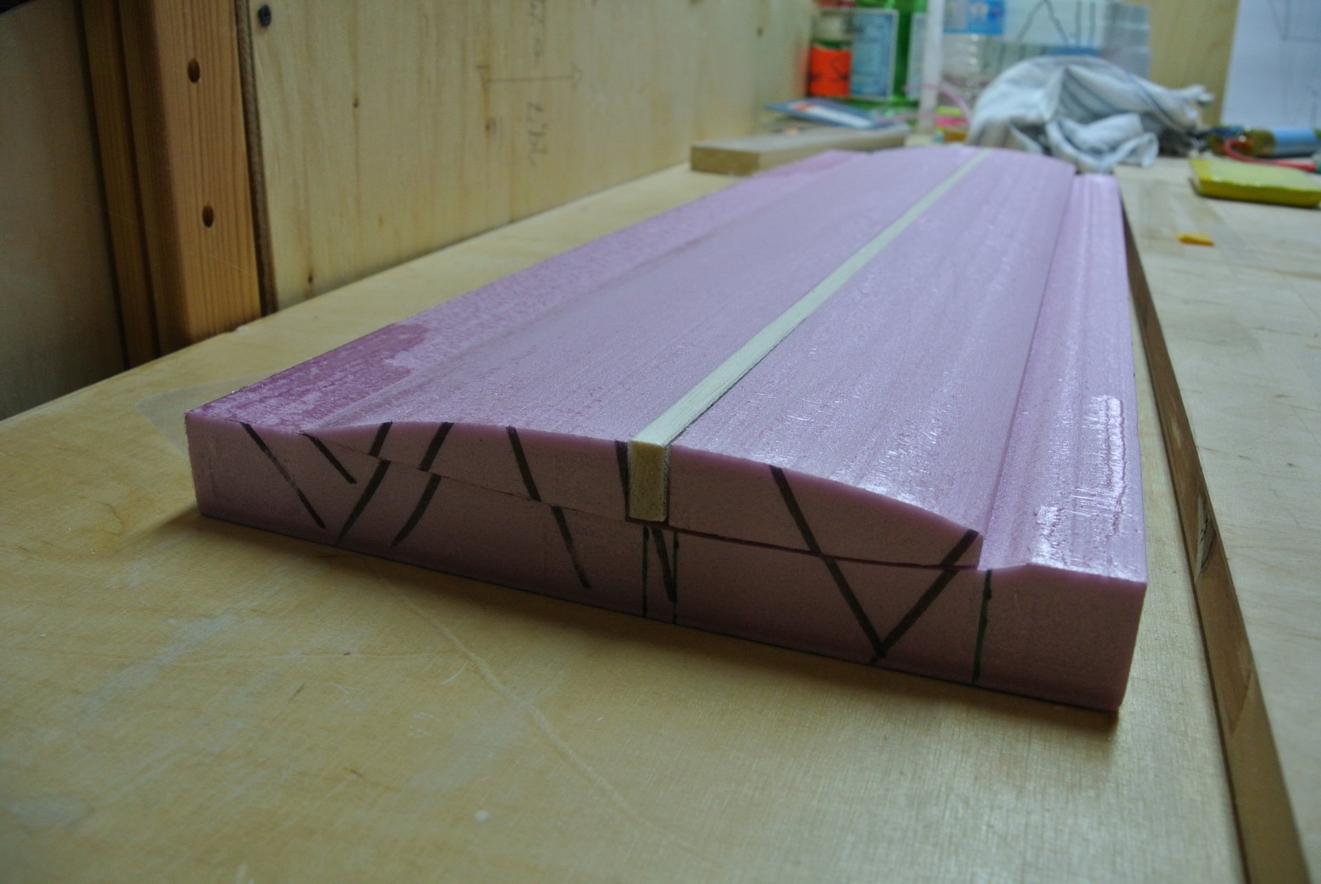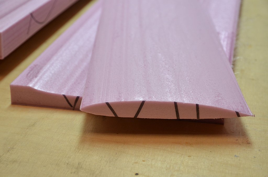 Die beiden Styrodurbloecke beinhalten ja bereits die geringe V-Form und