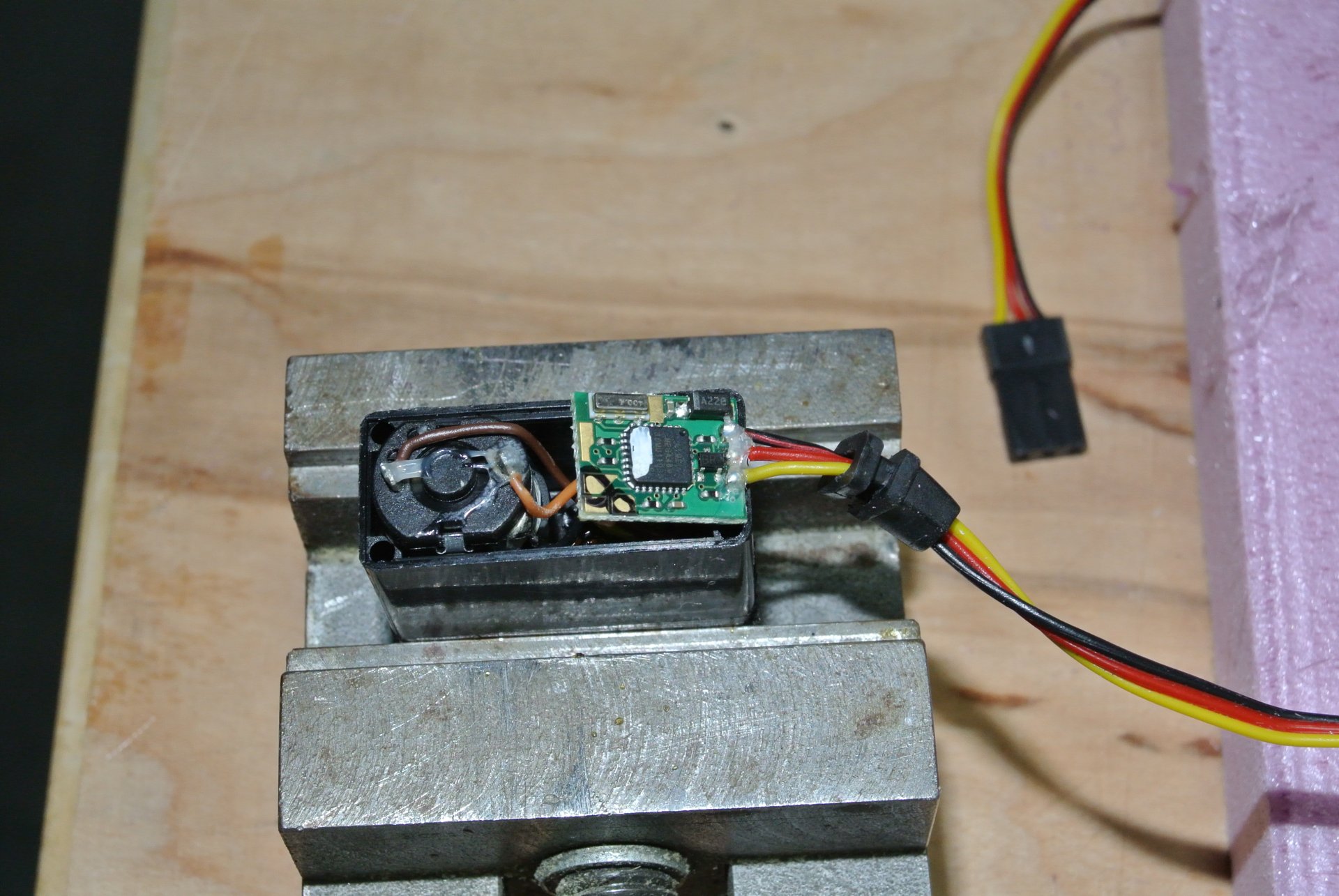 Also habe ich das Servo wieder verschraubt und die Kabel verlängert.