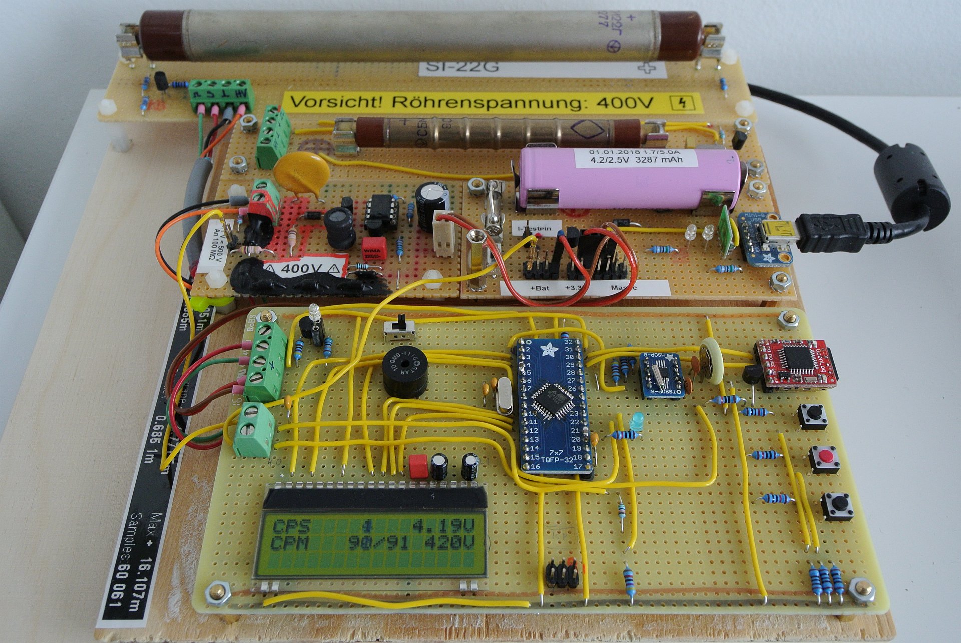 Erste Tests mit einem SBM-20 verliefen erfolgreich. Während der weiteren Entwicklung bleibe ich erstmal beim SBM-20, da es robust und preisgünstig ist.