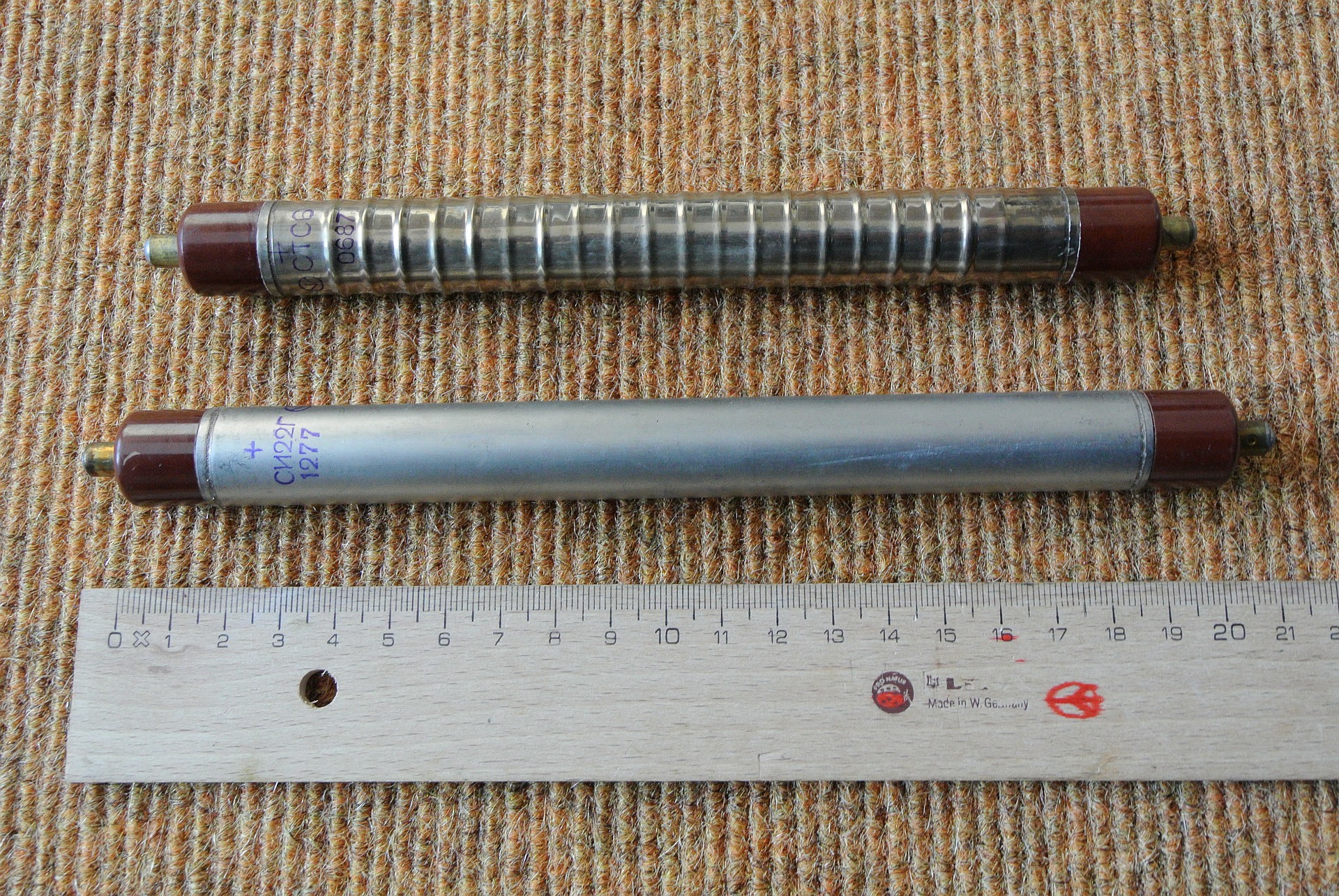 Ein Hochspannungskondensator ist natürlich auch notwendig (schon des Fotos wegen). Und da die Schaltung ohne Hochspannungskaskade oder Transformator auskommt,