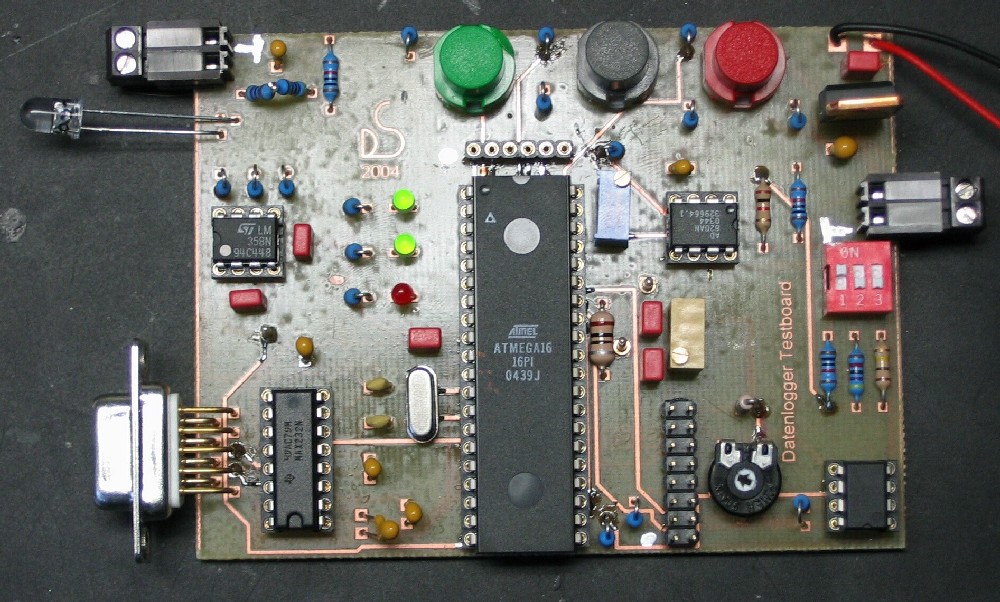 Darauf sieht es doch gleich viel ordentlicher aus :-) Die Verwendung des Mega16 kommt günstiger als der Mega8 mit Porterweiterung und obendrein bietet der Mega16 sogar eingebaute Verstärker für die AD-Wandler. Jetzt verwende ich aber ertsmal einen AD820...