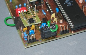 Die Testplatine ist jetzt um ein I2C-EEPROM ergänzt worden, um die nötige Speicherkapazität für den Bordcomputer bereit zu stellen. Später soll noch eine Porterweiterung hinzu kommen, um das Display anzusteuern und noch der Pegelwandler für die serielle Schnittstelle...