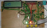 Jetzt wird in C programmiert. Das gnu-C-Paket WinAVR ist sehr gut zu bedienen und die Libaries von Peter Fleury ersparen einiges an Arbeit. Da die Lochrasterplatine nun wirklich etwas unübersichtlich ist und die Ports des Mega8 zu knapp sind, habe ich mir eine Platine für den Mega16 geätzt: