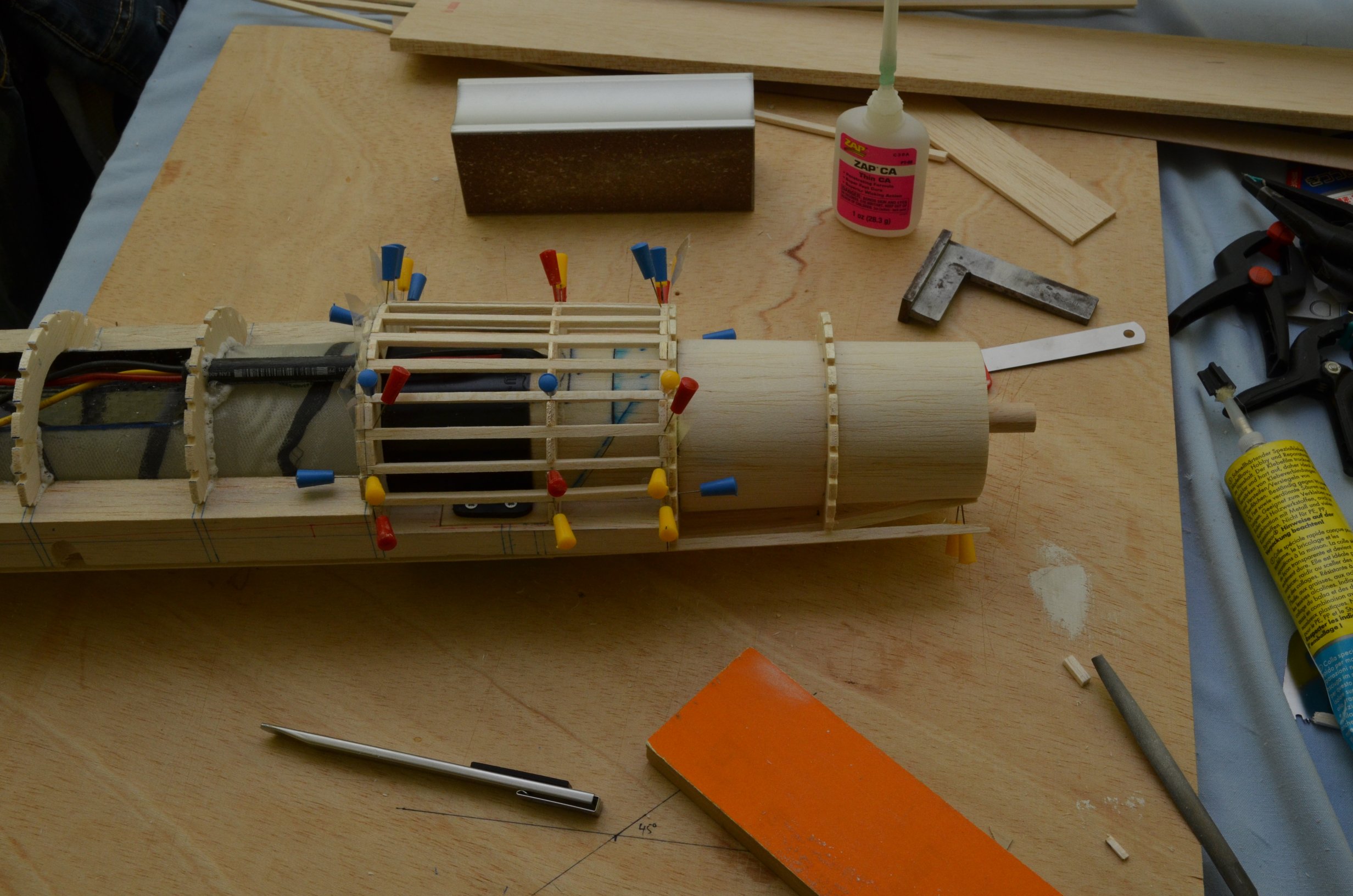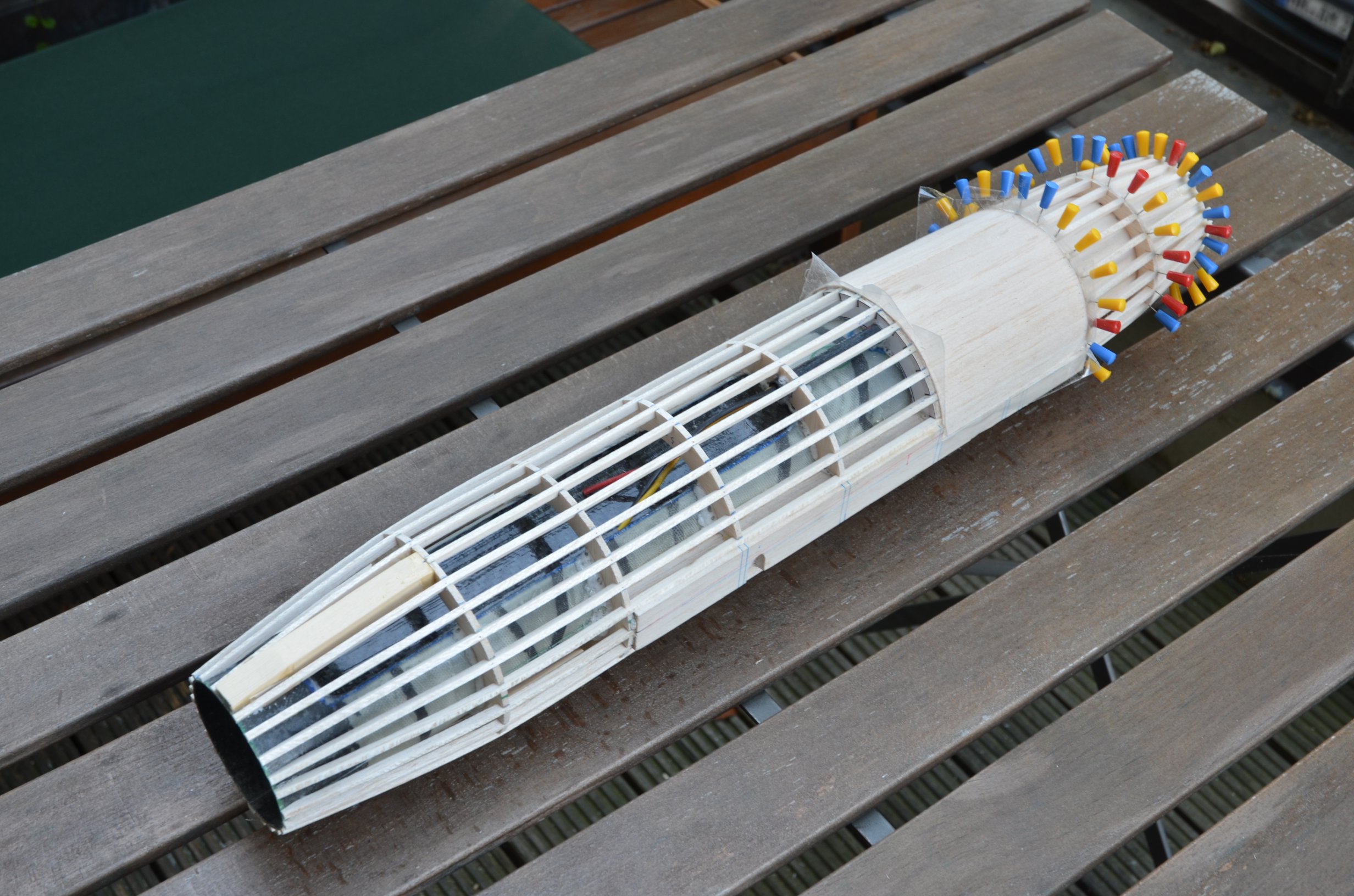 Eigentlich ist der Aufbau ja sehr einfach, ein Schubrohr mit Tragflächen und