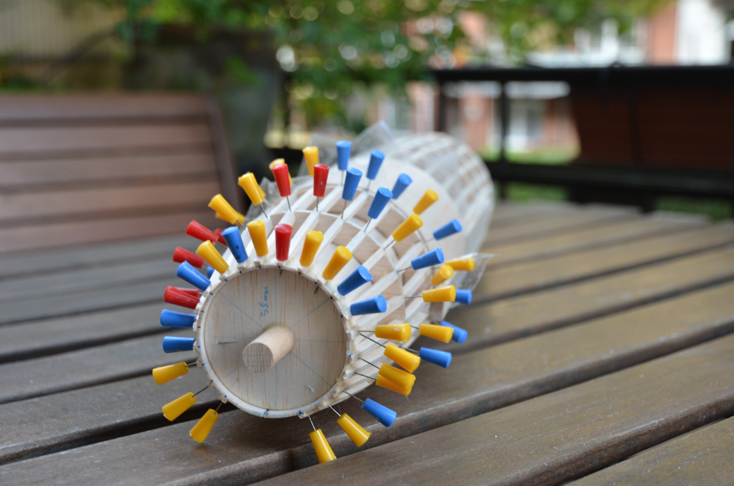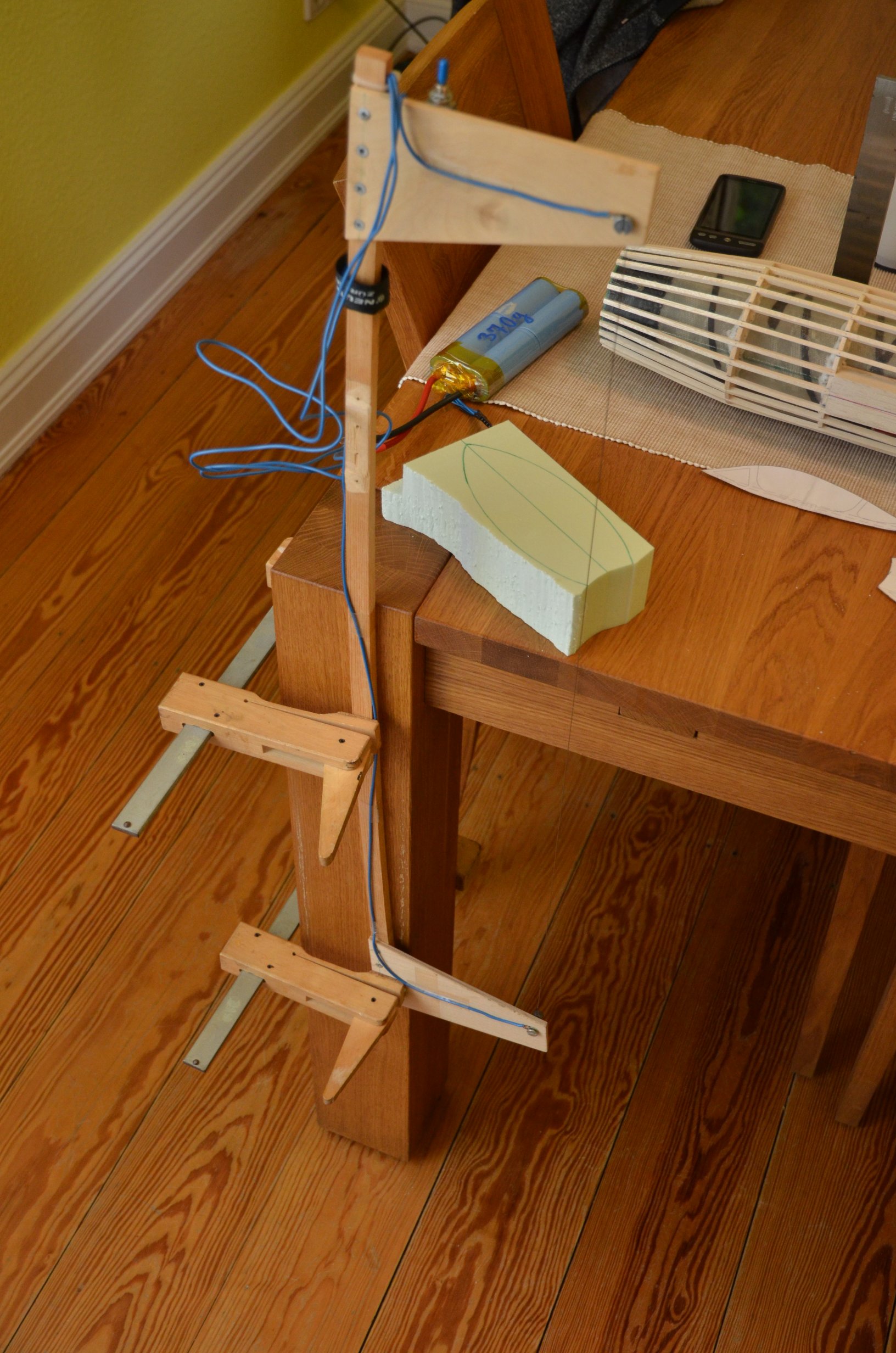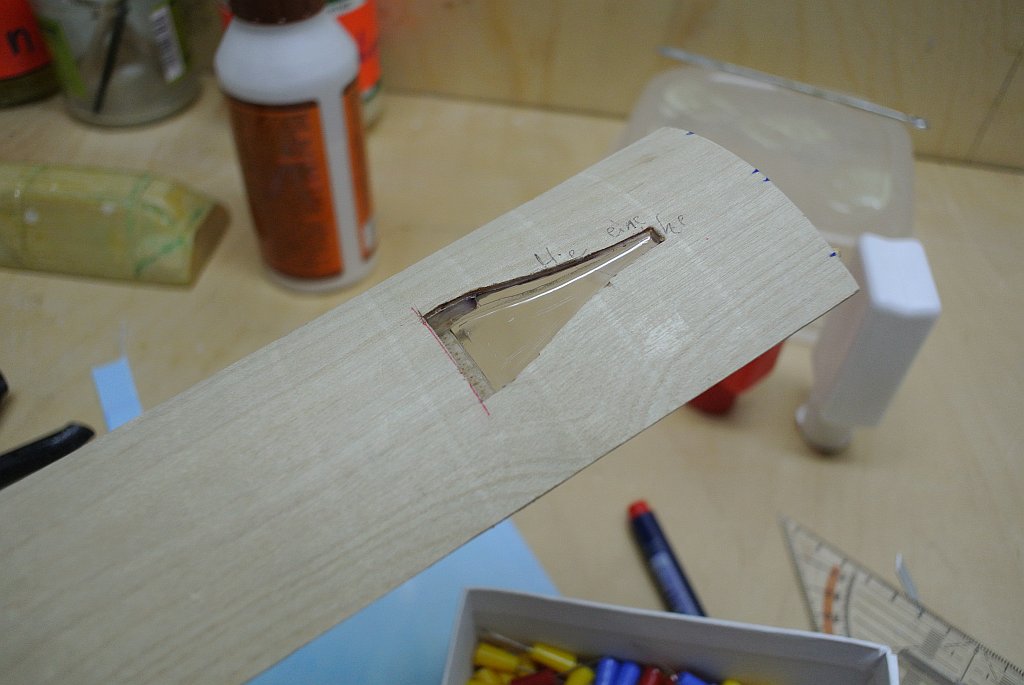 vor. Die Tragfläche wird aus rechteckigen Brettchen mit