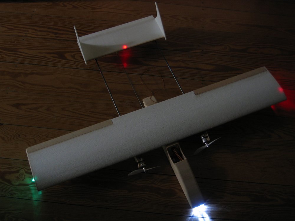 Fertig! Um den kleinen Flieger etwas aufzuwerten hat er noch eine Beleuchtung bekommen: