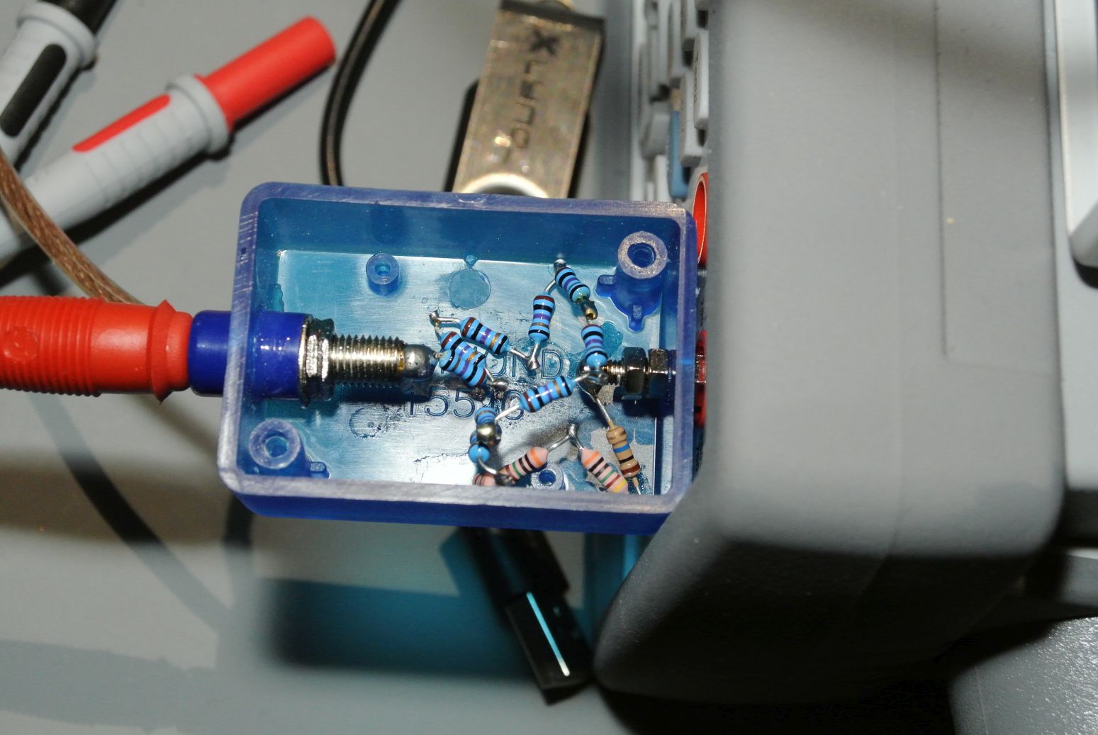 Um die Hochspannung überprüfen zu können habe ich mir ein 990 MOhm Widerstand gebaut, welcher mit den üblichen 10 MOhm eines Multimeters eine 1:100 Teilung ergibt.