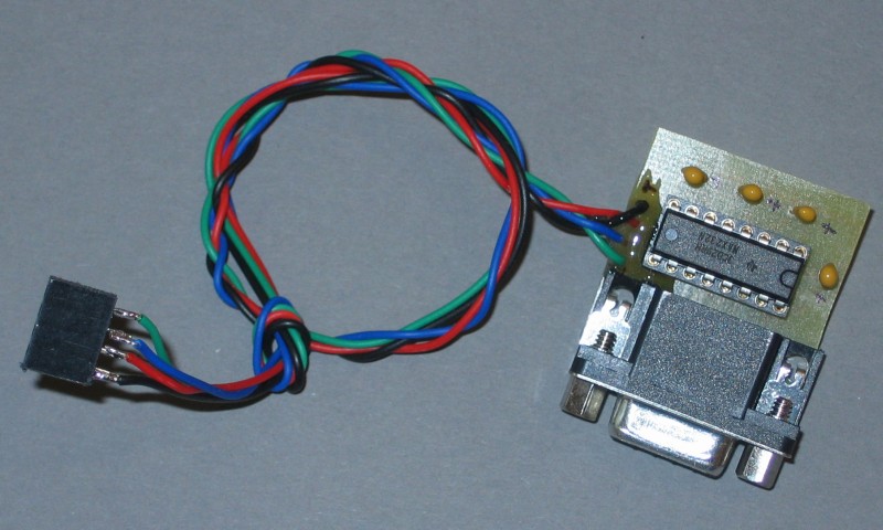 Der unumgägliche Pegelwandler für die serielle Schnittstelle wird bei mir vierpolig an die entsprechenden